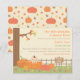 Une mignonne invitation au baby shower sur le thème de l'automne à invitation vos invités durant cette saison d'automne! Trouvez le mignon petit bébé parmi tous les citrouilles dans la cour citrouille de carreaux avec citrouilles et feuilles d'automne qui traînent autour. Au verso, on trouve un motif fait en utilisant le citrouille et les feuilles. Palette de couleurs non sexiste d'orange, de jaune, de vert et de marron qui convient à tous les bébés qui arrivent en automne. Personnalisez facilement vos informations de baby shower.