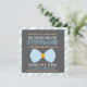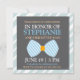 Un petit garçon invitation sur mesure avec une grande cravate à arc et des bandes diagonales en bleu et orange combinés au charbon de bois
