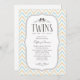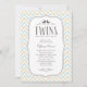 Invitations de douches pour bébés jumeaux avec un motif rayé bleu clair et or en cuivre chevron. Customisez le libellé avec vos informations baby showers. Affichez un aperçu de ce à quoi ressemblera le invitation fini à l'écran avant de commander.