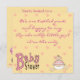 Le Baby shower est une façon géniale de célébrer l'arrivée prochaine du nouveau bébé. Utilisez les invitations merveilleuses et créatives pour invitation tout le monde à la fête. Utilisez le modèle personnalisé pour insérer tous les détails, tous les termes peuvent être modifiés. Le arrière - plan de votre invitation est jaune avec de petits coeurs roses éparpillés un peu partout. Les mots "Baby shower" dans le coin inférieur gauche et un petit joli dessin pour bébé. Le dos est recouvert d'un arrière - plan jaune et d'une petite calèche rose.