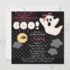 Un fantôme dans des cris roses d'un arc huent ! flottement à travers un ciel éclairé par la lune tandis qu'une araignée dans un arc rose pend de sa toile d'araignée rose sur ces invitations et invitations mignons d'anniversaire de Halloween qui sont plus mignons et girly qu'éffrayants. Polk arrière - plan noir et gris d'un point accomplit ce regard lunatique. Personnalisez ces invitations faites sur commande d'anniversaire de Halloween avec le nom de la fille d'anniversaire et l'information de partie. © Chrissy H. Studios, LLC d'illustration. Tous droits réservés. Cliquez sur dessus le lien suivant pour voir tout notre Chrissy mignon et original H.