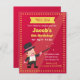 Une invitation d'assortir votre fête d'anniversaire de spectacle de magie ! Elle a un petit garçon mignon dans un équipement de magicien de veste noire de queue de pie, de casquette supérieur et de cravate d'arc rose. Il ondule une baguette magique magique dans sa main. Arrière - plan rouge avec les points jaunes pour la frontière. Grand pour des parties où vous engagez des magiciens ou si le garçon d'anniversaire aime exécuter tours de magie. Personnalisez facilement avec vos détails de partie.