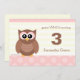 Invitations douces de fête d'anniversaire de hibou de bébé en chevrons et pois roses et jaunes. Customisez le texte pour créer vos propres invitations de fête d'anniversaire de kawaii de do-it-yourself. Mignon superbe ! ©MegaKawaii™