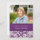 Soixante-dixième invitations de fête d'anniversaire de photo faite sur commande dans le motif vintage foncé élégant de pourpre, de crème et de damassé florale classique blanche. Ajoutez votre nom, photo, et détails de partie pour une invitation unique et élégante de fête d'anniversaire.