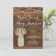 Invitations en bois de Fête de la mariée de tournesol rustique avec un souffle d'arrière - plan en bois de vieille grange rustique et d'un beau bébé floral.