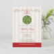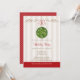 Les invitations mignonnes et de fantaisie de Noël et de fête de vacances de gui avec une boule et un sachet aromatique de baiser de fête décorés du feuille de gui, des baies blanches et des ornements d'or ont accroché avec un arc rouge. Le joli rouleau s'épanouit et l'arrière - plan barré et sensible d'une crème de polka de point de motif accomplissent ce regard de soiree d'hiver. © Chrissy H. Studios, LLC d'illustration. Tous droits réservés.