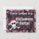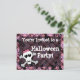 Invitations de fête d'Halloween crâne rose. Crâne mignon et os croisés avec arc rose et coeurs pour les yeux. L'Arrière - plan est rose, violet et noir plaid avec de la peinture noire. Idéal pour un halloween ado ou soirée costumée. Ajoutez votre texte personnalisé en ligne.