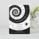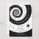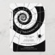 Invitations modernes en halloween noir et blanc avec un tourbillon noir et blanc chic décoré d'une toile d'araignée et araignée pendante. Customisez avec vos propres détails de fête d'Halloween. Parfait pour les soirées d'Halloween en noir et blanc, les fêtes d'anniversaire d'Halloween, ou cocktail d'Halloween adulte ou des fêtes de bureau.