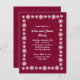 Ces invitations simples et élégantes à la fête du vin et du fromage de Noël présentent des flocons de neige blancs sur un arrière - plan bordeaux. Idéal pour des soirées de dégustation de vin de vacances ! Graphiques de Sanqunetti Design @ MyGrafico.com.