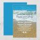 Invitations romantiques de fiançailles de plage avec noeud de corde et couple d'étoiles de mer. L'élégante conception nautique comprend une vague de mer, de la mousse blanche et du sable humide. Conçu pour la plage, la destination et la fête côtière.