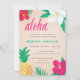 Invitations de luau hawaïenne tropicale, aux fleurs colorées et à l'ananas dessinées à la main sur un arrière - plan bronzé. Parfait pour les fêtes hawaïennes pour toute occasion !