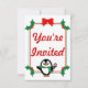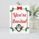 Pingouin de dessin mignon avec la frontière festive des Fêtes.