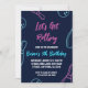Allez à une fête rétro ! Ces invitations à des soirées de bowling vintages cool sont parfaites pour une fête d'anniversaire de garçon ou un événement amusant de bowling pour enfants. Avec un design rétro en pin de bowling en bleu et rouge gras, ces invitations feront rouler vos invités dans l'excitation.
