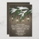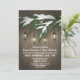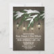 Invitations à feuillage persistant Lantern Engagement Party - design dispose d'un arrière - plan rustique en bois avec lanternes pendantes d'une branche d'arbre à feuillage persistant recouverte de neige. Voir les produits correspondants dans cette conception trouvés dans la collection sur cette page.
