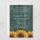 Country Turquoise Rustic Sunflower Engagement Party Invitations - dispose d'un arrière - plan rustique tourbillon turquoise grange avec des tournesols de campagne au fond.