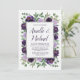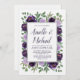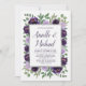 Invitations de la partie de fiançailles florales d'argent violet - présenter des fleurs d'aquarelle dans les tons violets (prune, aubergine, lavande, etc.) avec la verdure qui se compose d'eucalyptus et d'autres jolis sprigs.