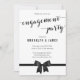 Invitations de la partie fiançailles en noir et blanc avec arc noir et texte personnalisable