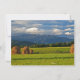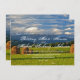 Mariage campagnard de terrain de montagne rustique Invitations présentant un beau terrain de foin entouré d'arbres verts, de montagnes et de ciels bleus avec quelques nuages. Ces annonces mariages sont parfaites pour les mariages ruraux ou de pays.