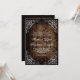 Vintage Damask Rustic Mariage campagnard Invitations avec un arrière - plan en bois de grange foncé avec un cadre vert arrondi fleuris orange et un motif vintage damassé s'est évanoui dans le bois. Elles sont idéales pour les mariages de l'Ouest, les mariages vintage et les mariages campagnards rustiques.