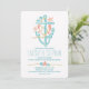 Invitations de mariage fantasque et moderne pour mariages nautiques, mariages de plage et mariages de destination. Plein de jolies coquillages, dollars de sable turquoise et turquoise, équitation corallienne et couple d'étoiles de mer. Elégant design d'ancre dessiné main brillant faire-part de mariage décontracté. Parcourez la collection pour plus d'éléments correspondants. Tous les éléments créés par Jinaiji