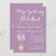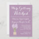 les invitations rustiques de mariage campagnard, invitations rustiques de mariage, invitations de mariage campagnard, invitations pourpres de mariage, invitations occidentales de mariage de pays, cru, invitations de mariage de pot de maçon, fleur, floral, obtenant accrochée, nous obtenons accrochés. fleurs de lavande, pot de mise en boîte, pot de maçon et dentelle