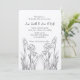J'ai été inspiré par les fleurs sauvages qui ont surgi dans l'espace libre derrière ma maison ce printemps. Les vignes commencent à se frayer un chemin à travers les hautes herbes sauvages, et les fleurs s'élèvent au-dessus de cela, faisant connaître leur présence. Romance est dans l'air, et si les fleurs sauvages font partie de votre événement, j'espère que ce design apporte l'élément naturel parfait, illustré à la main à votre mariage.