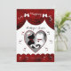 Ce mignon couple de chats marbrés de style gothique avec deux chats, le chat marié porte un collier rouge au coeur noir et un voile blanc mariage et le chat marié avec un collier rouge au coeur noir et un chapeau de dessus avec un groupe rouge noir entouré de coeurs rouges flottants surmontés d'un rideau rouge noir !