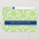 Cartes de Faire-part de mariage dans un élégant et contemporain vert pomme brillant, bleu marine foncé, blanc classique et chic damas fleuris motif vintage. Customisez ces invitations avec vos coordonnées mariages. Disponible dans des produits assortis pour tous vos besoins mariages.