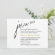 Cette élégante faire-part de mariage moderne est en couleurs blanc et noir avec des polices de style manuscrites et des lettres plus formelles pour compléter ce style graphique. Ce design simple conviendra parfaitement aux couples qui recherchent une invitation à la simplicité, dans un air de sophistication minimaliste. Modifiez les détails comme vous le souhaitez. Le verso de l'invitation vous permet d'ajouter de nombreux détails mariages, tels que les directions, le code vestimentaire, le registre des cadeaux selon vos besoins, en économisant la nécessité de dépenses supplémentaires de l'enceinte, les cartes de détails. Pour les articles correspondants ou l'assistance contactez le concepteur LeahG via l'onglet.
