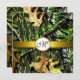Chasse au monogramme en or Invitations au mariage en camo : Elles sont décorées de feuilles, d'écorce, de brindilles dans des tons verts, gris et marron. L'avant est ornée d'une bande imprimée en or avec un sceau monogramme que vous pouvez customiser à l'dernière initiale du marié. L'arrière présente la même conception avec une zone de texte qui permet de faire passer le contour autour de la bande imprimée au maximum.