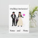 Un couple en cuir, en tenue mariage, avec coeurs, confettis et bouquet. Ajoutez des noms à l'avant et ajoutez des détails à l'arrière, l'heure du lieu, d'autres détails et le RSVP. Il dit aussi, Oui, c'est un Mariage de Biker. Vous pouvez ajouter, modifier, supprimer du texte et recommencer.
