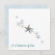 Invitations de mariage à la plage de Starfish. Les cartes de modèle carré sont plates et imprimées sur les deux côtés avec des zones de modèle à l'envers pour information mariage. Le design avant a une ligne diagonale d'étoiles de mer crayon en bleu et marron avec 2 étoiles de mer symboliques (du couple) au centre.