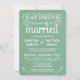 Mangez, buvez et soyez mariés — invitations à des mariages campagnards rustiques de style Vintage — Ajoutez les noms de mariée et de mariée et les informations mariages dans ce modèle facile d'utilisation. Tourbillonnant, parchemins bouclés et typographie à l'ancienne en blanc éclatant sur arrière - plan brun vert menthe sauge. La calligraphie élégante, mais amusante et fantaisiste, de type tableau noir rétro peut être modifiée pour votre thème mariage formel ou semi-formel. Le style moderne Décontracté convient parfaitement aux mariages contemporains branchés avec une touche de charme sophistiquée pour les couples traditionnels. Veuillez nous contacter pour obtenir de l'aide sur la personnalisation si vous avez besoin d'espace supplémentaire pour vos détails mariages.IMPORTANT : Affiché sur les cartes d'invitation standard de la taille A7. Autres tailles et styles disponibles.