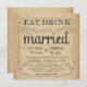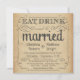Mangez, buvez et soyez mariés — invitations à des mariages campagnards rustiques de style Vintage — parchemins Tourbillonnant, parchemins bouclés et typographie à l'ancienne sur un arrière - plan unique de parchemin d'écru ancien et ancien. Ajoutez vos noms et informations mariages dans ce modèle facile à utiliser. La calligraphie de script élégante mais amusante et fantaisiste de style tableau de bord peut être modifiée pour votre thème rétro mariage formel ou semi-formel. Le style moderne Décontracté est parfait pour les mariages contemporains branchés avec une touche amusante de charme sophistiqué pour les mariés et mariés traditionnels. Veuillez nous contacter pour obtenir de l'aide sur la personnalisation si vous avez besoin d'espace supplémentaire pour vos détails mariages. Autres formats et styles de tableau de bord disponibles, ainsi que des styles de coordination pour les fiançailles et les douches en couple.IMPORTANT : Cette conception de produit est configurée pour les cartes carrés uniquement — nécessite un affranchissement supplémentaire.