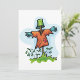 N’ayez pas peur, ce n’est qu’un épouvantail. Elles sont conçues pour faire fuir les oiseaux. Cette épouvantail a un dessus orange et semble porter un seau sur sa tête. Ses bras sont tendus et se tiennent dans une herbe verte. Cette conception épouvantable semble très bien sur ces invitations