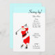 Invitations de Noël sur le thème du golf mettant en vedette le golfeur Père Noël. Correspondance de la partie de golf faveurs et décorations disponibles. Modifiez le modèle à customiser.