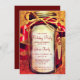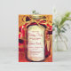 Une invitation à la fête de Noël rustique avec un bocal de mason avec ruban rouge et un tag Père Noël rustique accroché sur le côté du bocal de mason. Ajoutez votre propre texte d'invitation de fête de vacances à ce modèle. Si vous devez ajouter ou supprimer des lignes de texte, utilisez le bouton "Customiser". L'arrière de l'invitation est rouge solide.