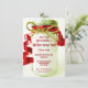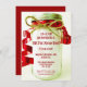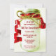 Une invitation à la fête de Noël rustique avec un pot de maçon avec ruban rouge et arc en forme noué autour. Style de police amusant. Ajoutez votre propre texte d'invitation de fête de vacances à ce modèle. Si vous devez ajouter ou supprimer des lignes de texte, utilisez le bouton "Customiser". L'arrière de l'invitation est rouge solide.