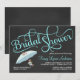 Invitations de Fête de la mariée de tableau -- Calligraphie tourbillonnante élégante de bruissement sur le tableau noir de gris d'ardoise avec le parapluie féminin mignon et les fleurs abstraites. Ajoutez juste le nom de la future mariée, de la date, du temps et des détails, et personnalisez l'information nuptiale d'enregistrement. Cliquez sur la personnaliser il pour changer la taille, le style, les polices, la couleur et la disposition pour créer vos propres invitations abordables de wedding shower.