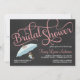 Invitations de Fête de la mariée de tableau -- Calligraphie tourbillonnante élégante de bruissement sur le tableau noir de gris d'ardoise avec le parapluie féminin mignon et les fleurs abstraites. Ajoutez juste le nom de la future mariée, de la date, du temps et des détails, et personnalisez l'information nuptiale d'enregistrement. Cliquez sur la personnaliser il pour changer la taille, le style, les polices, la couleur et la disposition pour créer vos propres invitations abordables de wedding shower.