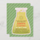 Ceci badine des utilisations d'invitation de fête d'anniversaire de la science le flacon de chimie de la science avec bouillonner liquide jaune et vert comme base de la conception où vous pouvez personnaliser les divers modèles des textes sur le flacon. Arrière - plan des rayures inclinées. La palette de couleur du jaune et du vert est la conception neutre de genre qui est grande pour des garçons et des filles d'anniversaire.