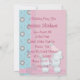 invitations de fête d'anniversaire de style des années 50 comportant le juke-box, les disques, le ruban de caniche et l'arc sur l'arrière - plan rose et bleu. Le verso est la même conception dans très une couleur claire afin d'ajouter l'information pour la partie. Complétez juste les champs de votre propre personnaliser de l'information ou de clic pour faire votre propre chose.