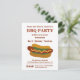 Invitez vos amis plus de pour la partie de BBQ dans la célébration de la nouvelle maison avec cette invitation. Elle a une saucisse de hot-dog dans un petit pain avec de la laitue et la sauce à moutarde et à piments dans la palette de couleur vintage. Personnalisez facilement avec vos détails de partie. Motif de zigzag de Chevron sur la page inverse. En outre grand pour célébrer des anniversaires et l'été adultes parties.