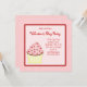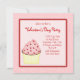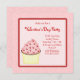 Ces invitations orientées de Valentine ont un petit gâteau de chocolat, avec le givrage rose pelucheux, et le coeur rouge arrose, a un rose, un arrière - plan modelé par coeur à la frontière, et un pois rose-clair au centre.