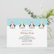 Des pingouins dans la neige invitations à la fête de Noël. Oeuvre de Sanqunetti Design