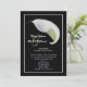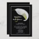 Les couples préfèrent souvent les amis invitations à une réception après le mariage plutôt qu'à une réception de mariage. C'est une excellente façon de faire savoir à tout le monde que vous êtes marié et de célébrer votre mariage après mariage. Cette élégante invitation à la réception d'un mariage à la suite d'un mariage fleuri présente un lys calla blanc sur un arrière - plan noir. Les noms de la mariée et du marié apparaissent à gauche du lis avec tous les détails de l'invitation à la réception de votre mariage ci-dessous. Une très élégante et magnifique invitation de réception post mariage. Copyright henishouseo