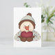 Un bonhomme de neige mignon habillé en casquette avec un nez de carotte tenant un coeur d'amour. Ce design d'amour bonhomme de neige a l'air super sur ces Invitations