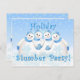 Les petites filles bleues mignonnes toutes de neige dans une rangée avec les casquettes et les mitaines bleus d'hiver comme jolis flocons de neige tombent par le ciel bleu est une conception délicieuse pour vos invitations de sleepover de Noël. Tous texte arrière peuvent être personnalisés dans le modèle fourni. Vous pouvez également avoir plaisir à assortir des enveloppes, des timbres, le magnet et des autocollants disponibles dans mon magasin. L'art et la conception originaux de l'Anura conçoivent le studio 2010.