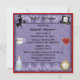 Alice élégante et mignonne dans des invitations neutres rouges, pourpres et noirs du pays des merveilles de baby shower de thé. Sur l'avant de ces invitations lunatiques de baby shower il y a une silhouette mignonne d'Alice avec une couronne de princesse, une silhouette de chat de Cheshire, un pot de thé et un coeur au goût âpre de confiture rouge sur un joli arrière - plan de grunge de lilas/de coeurs et roses de lavande. Sur le dos des invitations est une boisson je bouteille, le chapelier fou, tasse de thé, bloque le coeur au goût âpre, la montre de poche et un casquette fou de chapelier. NOTEZ SVP : Tous les produits sur Zazzle ont des images imprimées d'appartement. Tous les éléments de conception peuvent être remis à la côte, déplacés ou enlevés. Tout les texte est entièrement personnalisable pour répondre à vos besoins et vous pouvez changer le style de police, la couleur et la taille de la police si vous désirez. Si vous avez besoin de n'importe quelle aide customisant votre produit svp me contactez par mon magasin et je serai heureux d'aider.