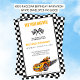 "Vroom Vroom ! Préparez-vous pour l'aventure automobile ultime! Notre petit accélérateur tourne un (l'âge est modifiable) et il est temps de réveiller les moteurs et de rejoindre l'excitation. Vous êtes invité à un bash d'anniversaire de course à l'adrénaline pomper! Rejoignez-nous pour une journée remplie de voitures rapides, de moments de sensations fortes, et à damiers plaisir du drapeau. La piste est réglée, et les moteurs sont en rugissement. Faites la course pour nous aider à célébrer avec une ligne d'arrivée à damiers drapeau.